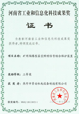 LED燈省工業(yè)和信息化科技成果證書(shū)