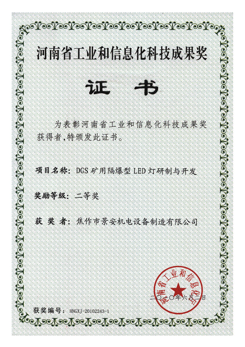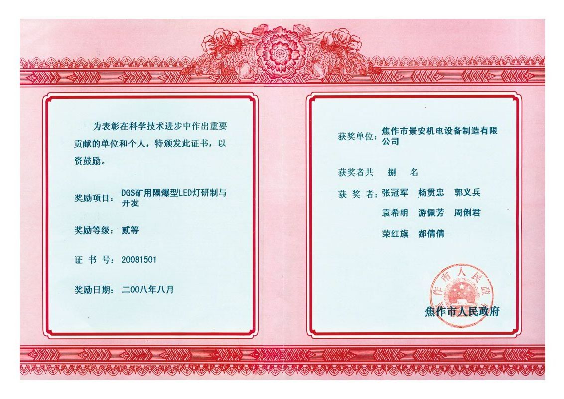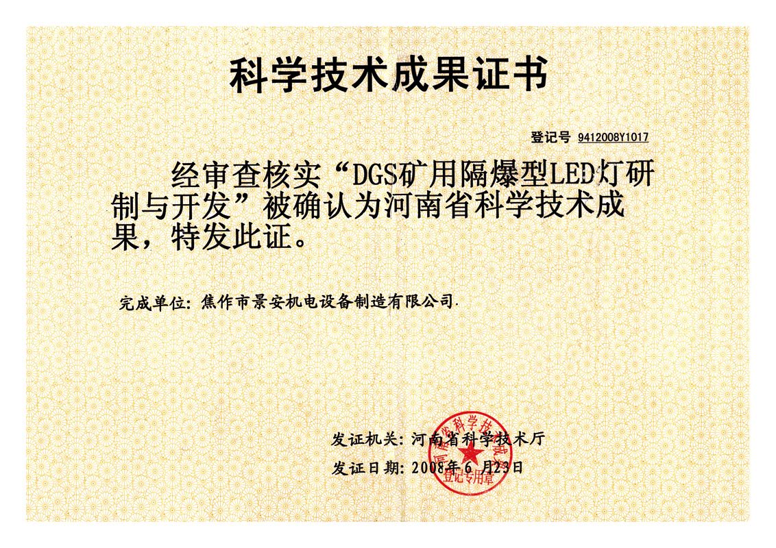 LED燈焦作市科學(xué)技術(shù)進(jìn)步獎(jiǎng)