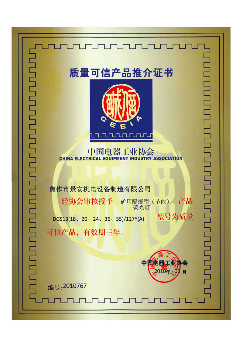 推介證書(shū)-熒光燈
